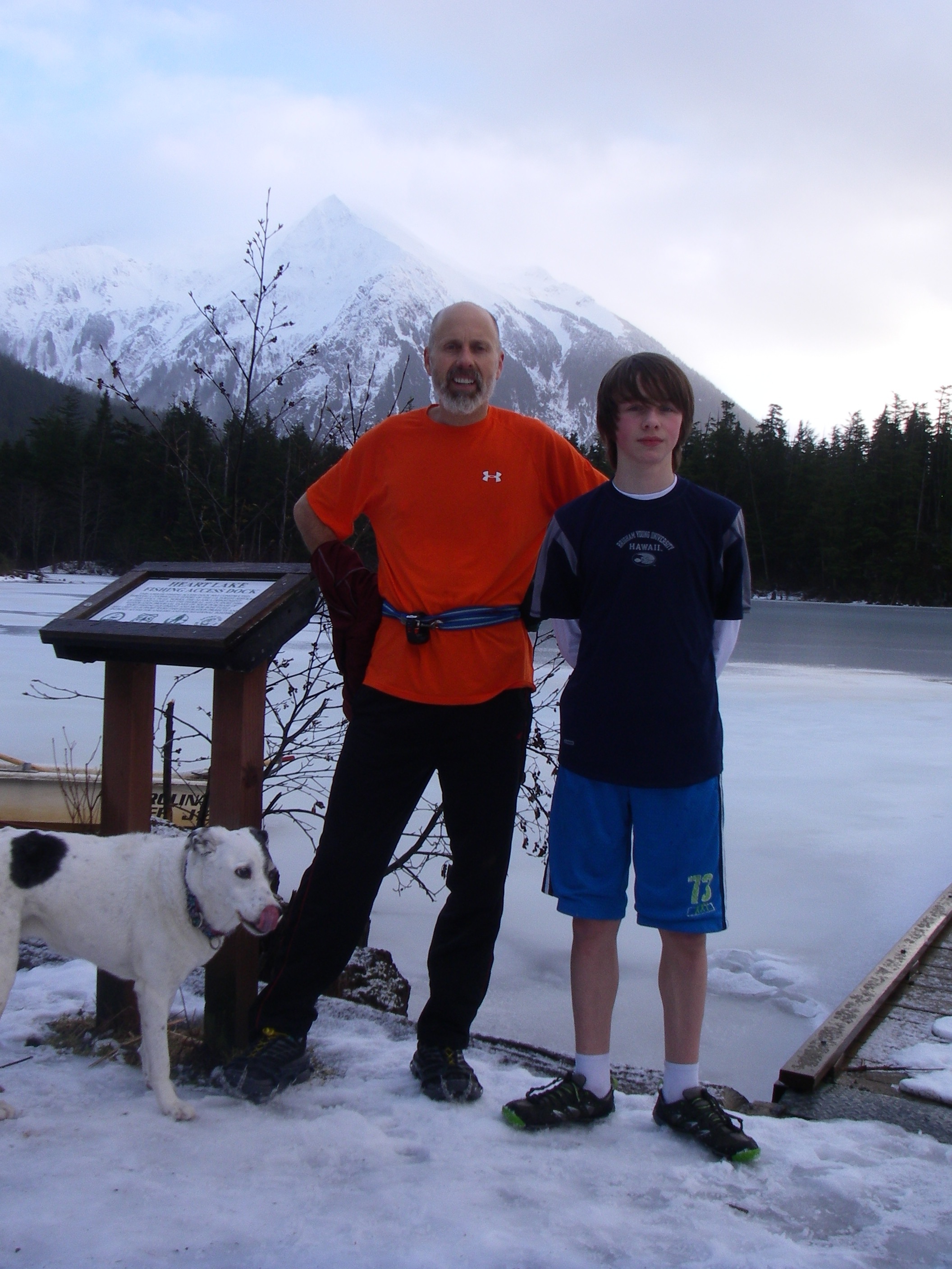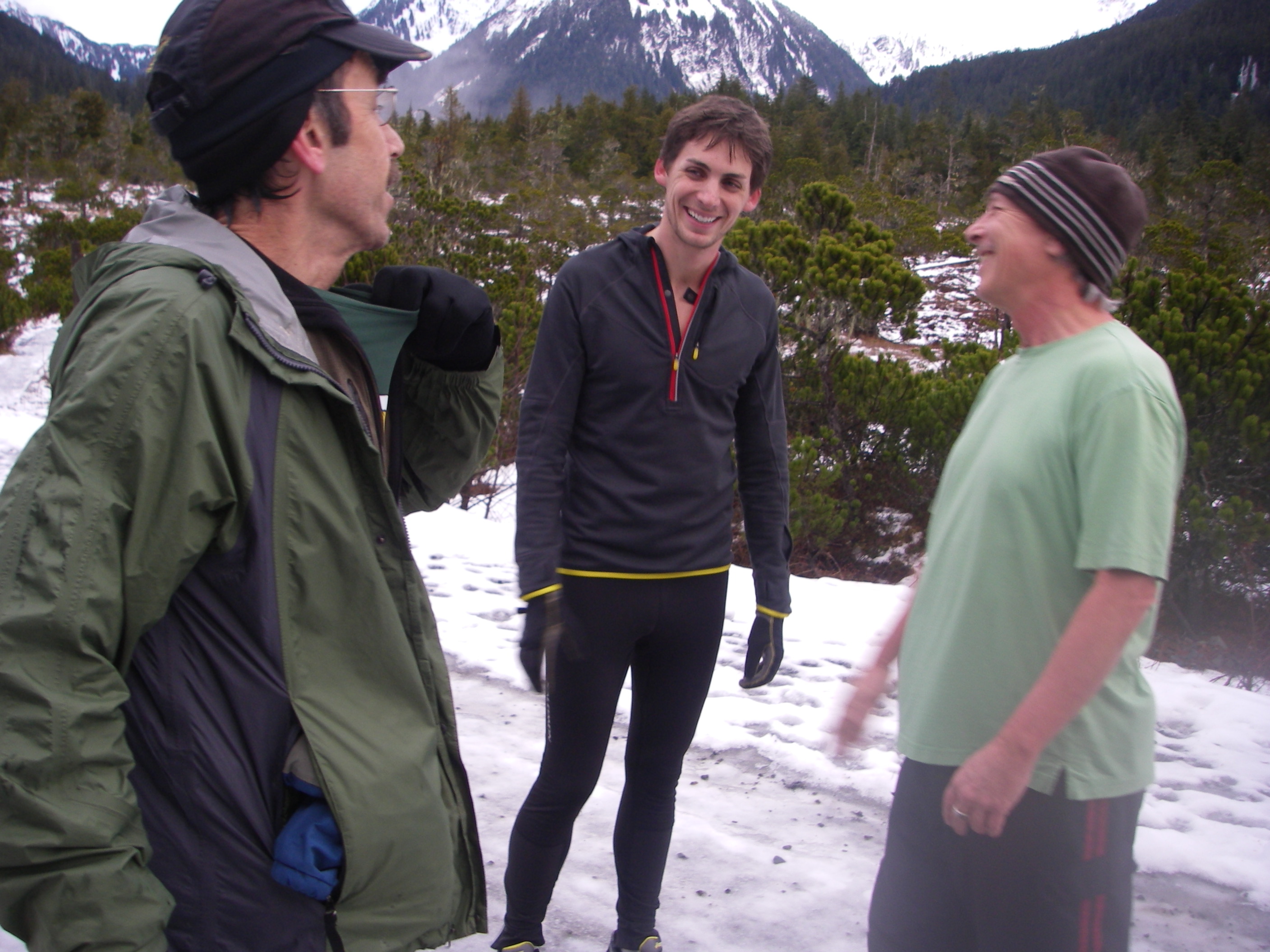 As far as I know, no father and son team has ever run across America together. David and I want to change that. Of course, I don’t want to hold David back, so I’ve got one beautiful and busy year to get ready. Sitka ain’t much for roads, but that’s okay, neither am I. I’m a trail runner and Sitka is a trail runner’s paradise. In the past four days, I’ve run three runs: Indian River Falls, Beaver Lake, and Picnic Rock, for a total of 30 hilly miles. That’s not as much as we’ll be running when we cross the U.S.A., but it’s a good start. And it was done on great trails with great company, including, Jeff, Drew, Els, Russell, David, and Angel. (Thank you all!)